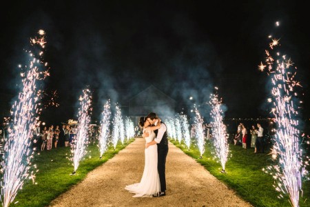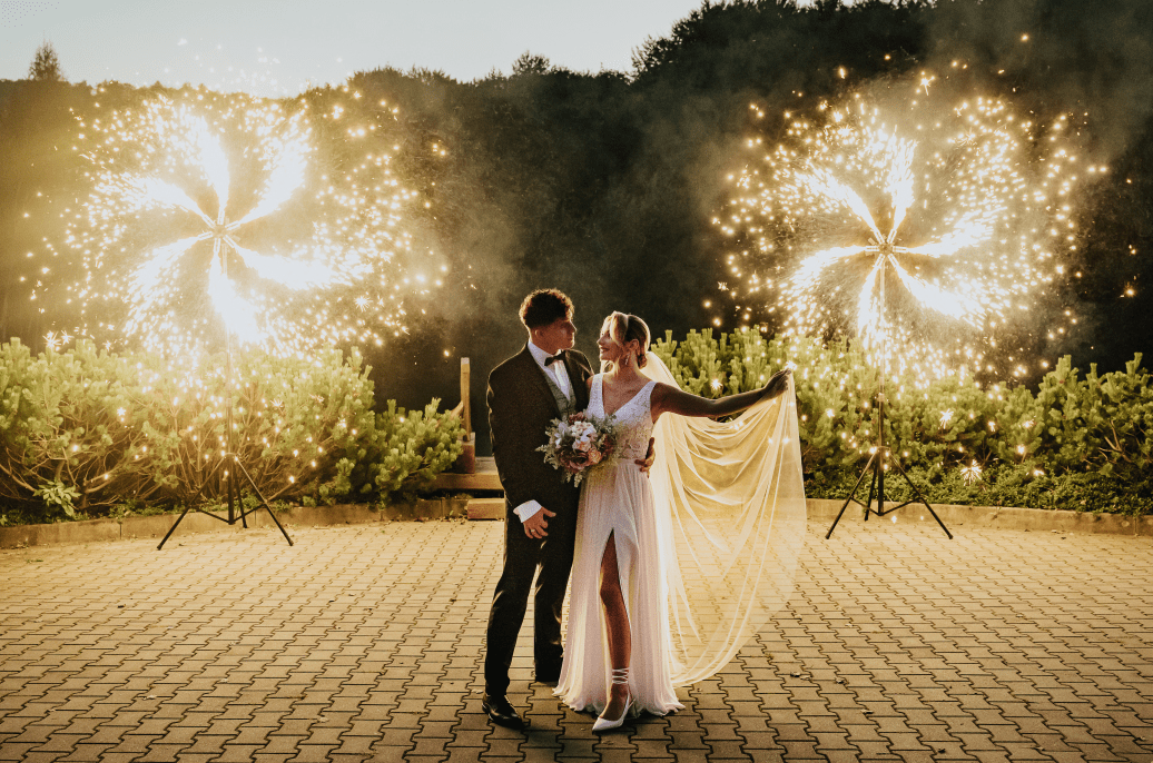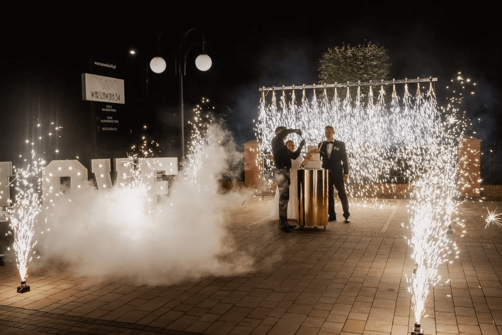 Fontanny iskier to doskonały sposób na na podkreślenie najważniejszych momentów Twojego wydarzenia. Stworzą niezapomnianą atmosferę, która podkreśli ważne momenty i zachwyci Twoich Gości. Dzięki możliwości użycia ich zarówno na zewnątrz, jak i wewnątrz, pokaz ten daje szerokie możliwości zastosowania, czyniąc każdą uroczystość naprawdę wyjątkową. Dodatkowo fontanny iskier świetnie wyglądają na zdjęciach, tworząc efektowne tło, co pozwala stworzyć oryginalne fotografie z uroczystości.